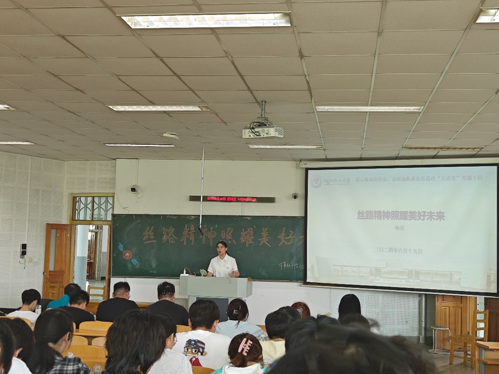 杨亮老师向同学们详细讲述了和平、合作、开放、包容的“丝路精神”,她指出科技创新是“一带一路”建设的重要支撑,而“丝路精神”所倡导的互学互鉴、互利共赢,正是推动科技进步和国际合作的关键。杨亮老师鼓励当代大学生要有“走出去”的勇气和决心,要将个人梦想融入国家发展大局,要为构建人类命运共同体贡献力量。杨亮老师的讲座激发了全体学生的深刻思考,也为他们未来的学术探索和职业发展指明了方向。