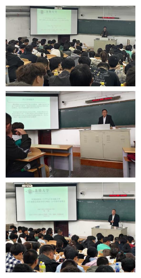首先,王军院长介绍“2.5+2”项目。他详细介绍了项目的背景、内容、意义。周晴教授介绍了日本北陆大学的地理环境,校园设施、校园环境,留学生在北陆大学学习生活费用、奖学金以及住宿环境、留学生在北陆大学所学课程及其就业方向等。