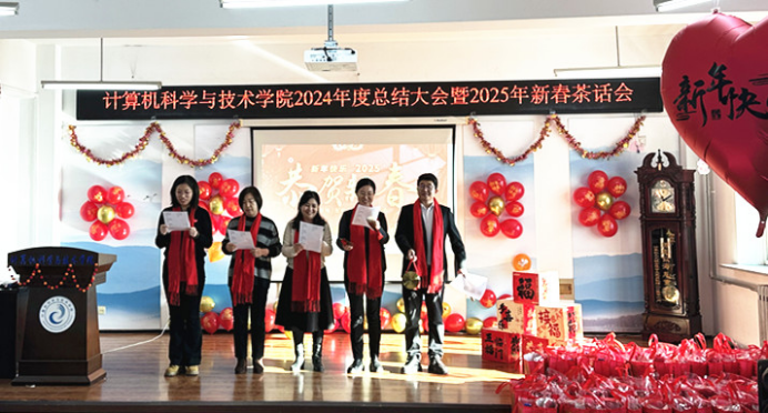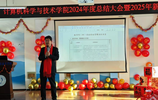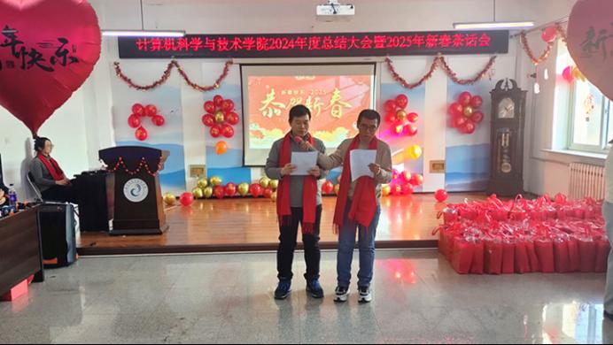 2025年1月10日BEAT365英国官网全体教师欢聚一堂,在致本楼E座517成功举办了2024年度总结大会暨2025年新春茶话会。学院院长王军代表学院向全体教职工致以最诚挚的问候和最美好的新年祝福。他详细总结了2024年学院党建和思想政治工作、学科建设、人才培养、科技工作等,指出了学院工作亮点及不足。展望2025年,他希望大家同心同向同行,坚定信心、守正创新、埋头苦干,推动学院各项工作高质量发展。