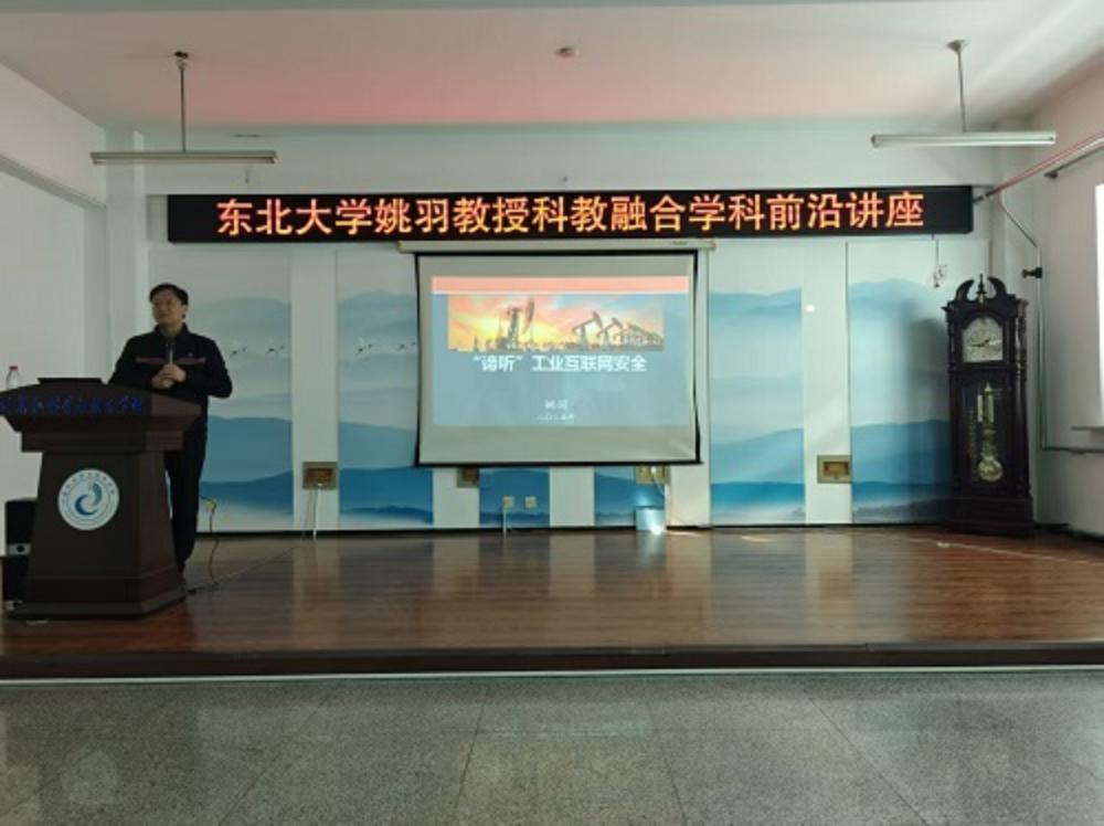 报告中,姚羽教授以工业互联网安全面临的现实挑战为切入点,结合当前数字经济发展背景,系统分析了工业互联网安全防护在技术架构、应用场景、风险特征等方面呈现的新特点,以及工业企业在数字化转型过程中对安全防护提出的新需求。在此基础上,他重点分享了东北大学“谛听”团队在国家重点研发计划课题支持下的研究成果,围绕全球网络测绘、高交互工控蜜罐、异常流量分析等核心技术,详细阐述了数智驱动下工业互联网安全防御体系的构建思路与实现路径。这些技术通过融合大数据分析、人工智能、网络空间测绘等前沿方法,能够实现对工业网络安全态势的精准感知、威胁的快速识别与高效处置,为工业系统安全稳定运行提供有力保障。报告最后,姚羽教授针对工业互联网主动防御、协同防护等关键技术的未来发展趋势展开深入探讨,提出了构建“感知-分析-决策-响应”闭环安全防护体系的思考,并强调了跨领域、跨企业、跨区域协同防护在应对复杂网络安全威胁中的重要性。他的观点为在场师生拓宽学术视野、把握行业发展方向提供了重要启发。报告结束后,姚羽教授还与现场师生就工业互联网安全技术落地应用、人才培养等问题进行了互动交流,耐心解答了师生们提出的疑问,现场学术氛围浓厚。